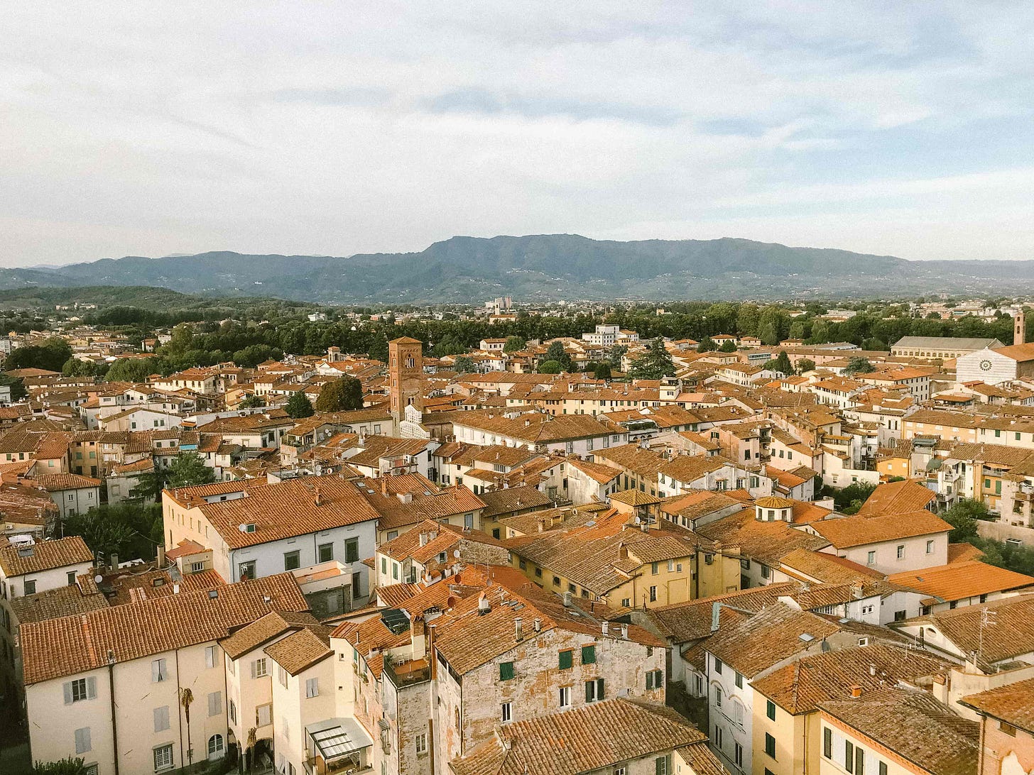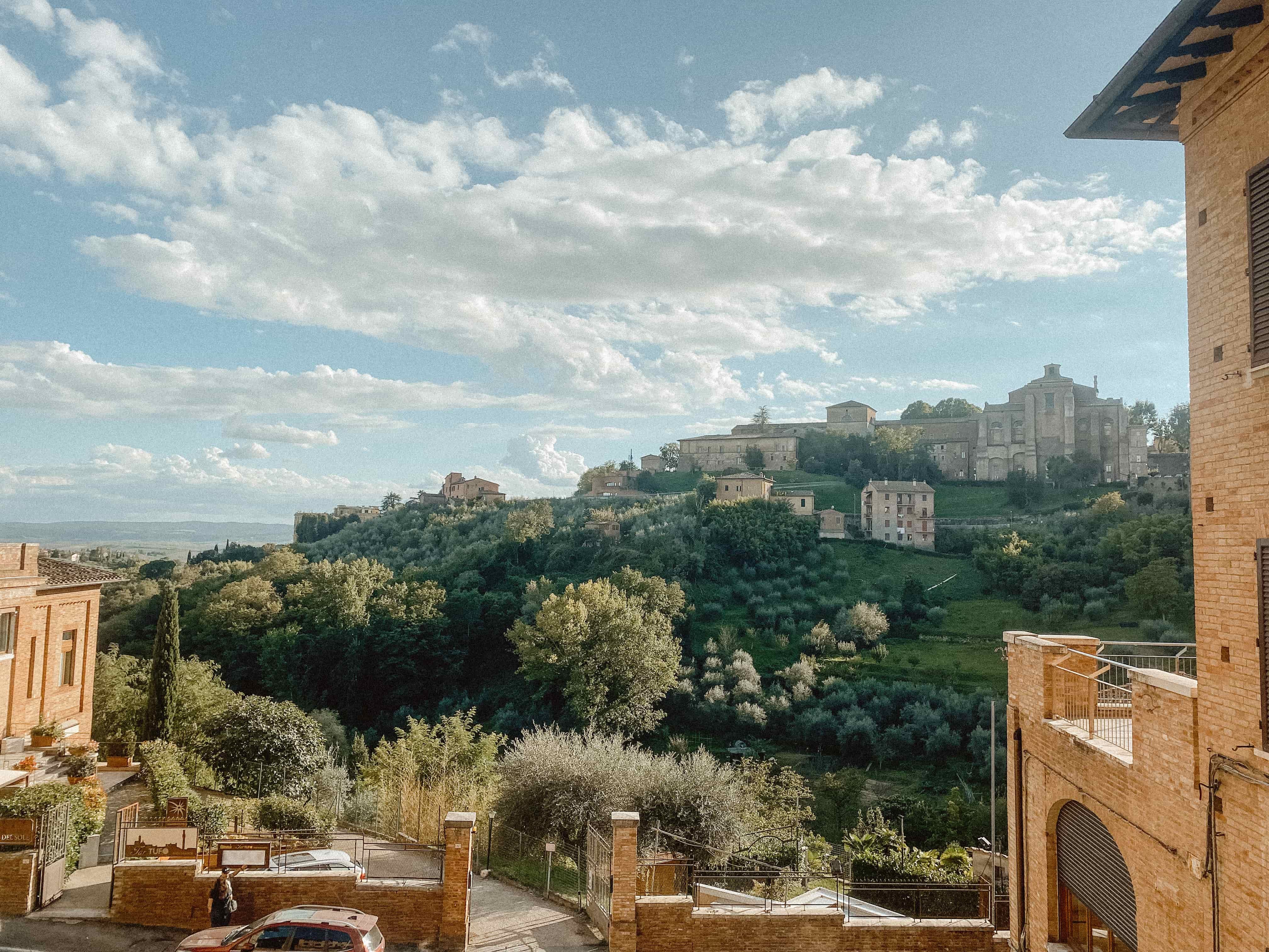 Full circle views of terracotta rooftops and ochre cradled between the Tuscan hillscape;