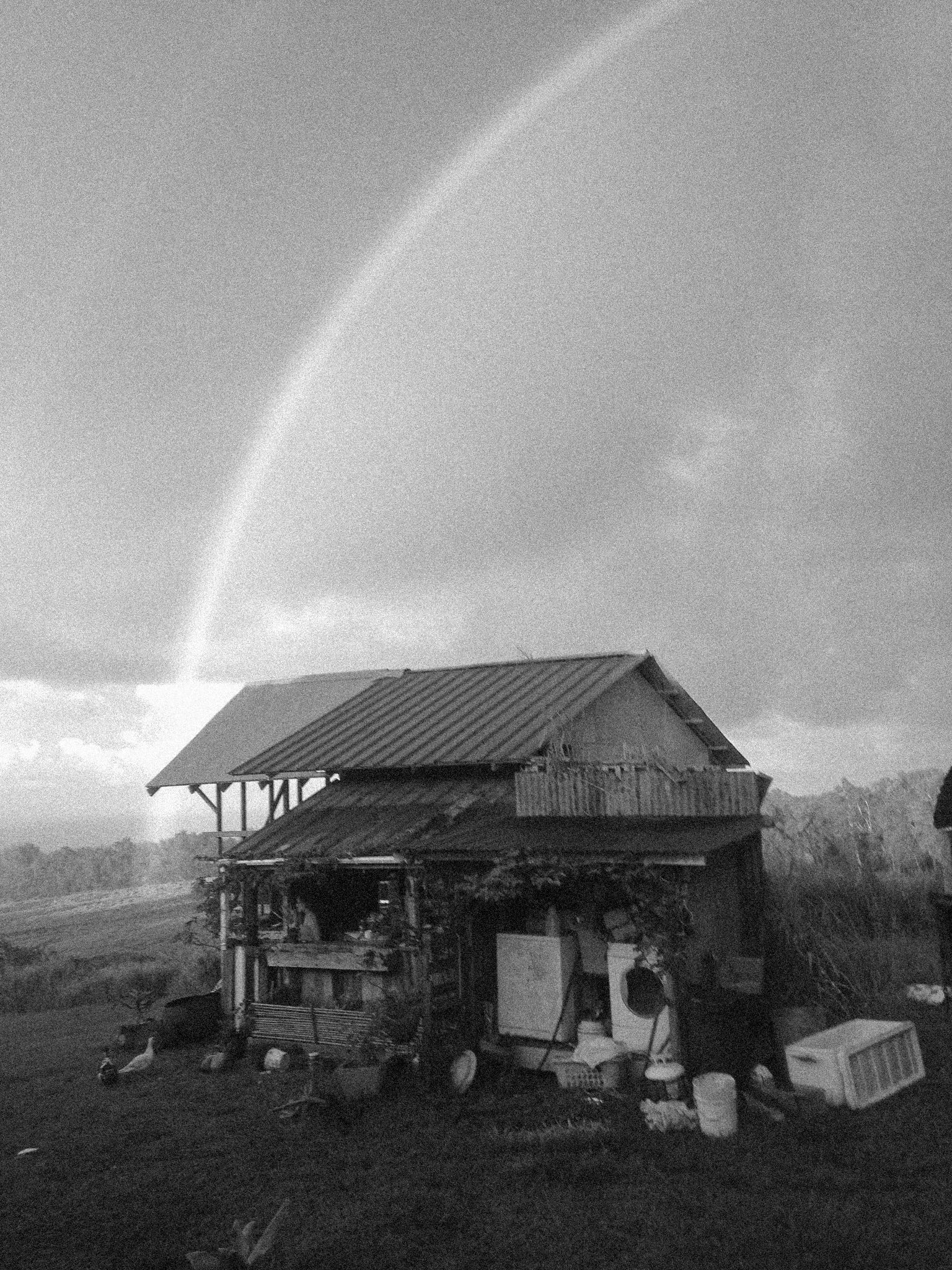Then the long retired horse stall, my first home in Hawai’i that I shared for seven months with my best childhood friend. I can still feel the weight of pulling open the sliding barn door in the mornings, like drawing the curtains to let the light in; waking with the chickens; the art and found objects and over-worked paint brushes in recycled jars intentionally arranged on turquoise painted shelves; the rug in the middle of the room, littered with paper clippings after a night spent Valentine crafting for new friends.