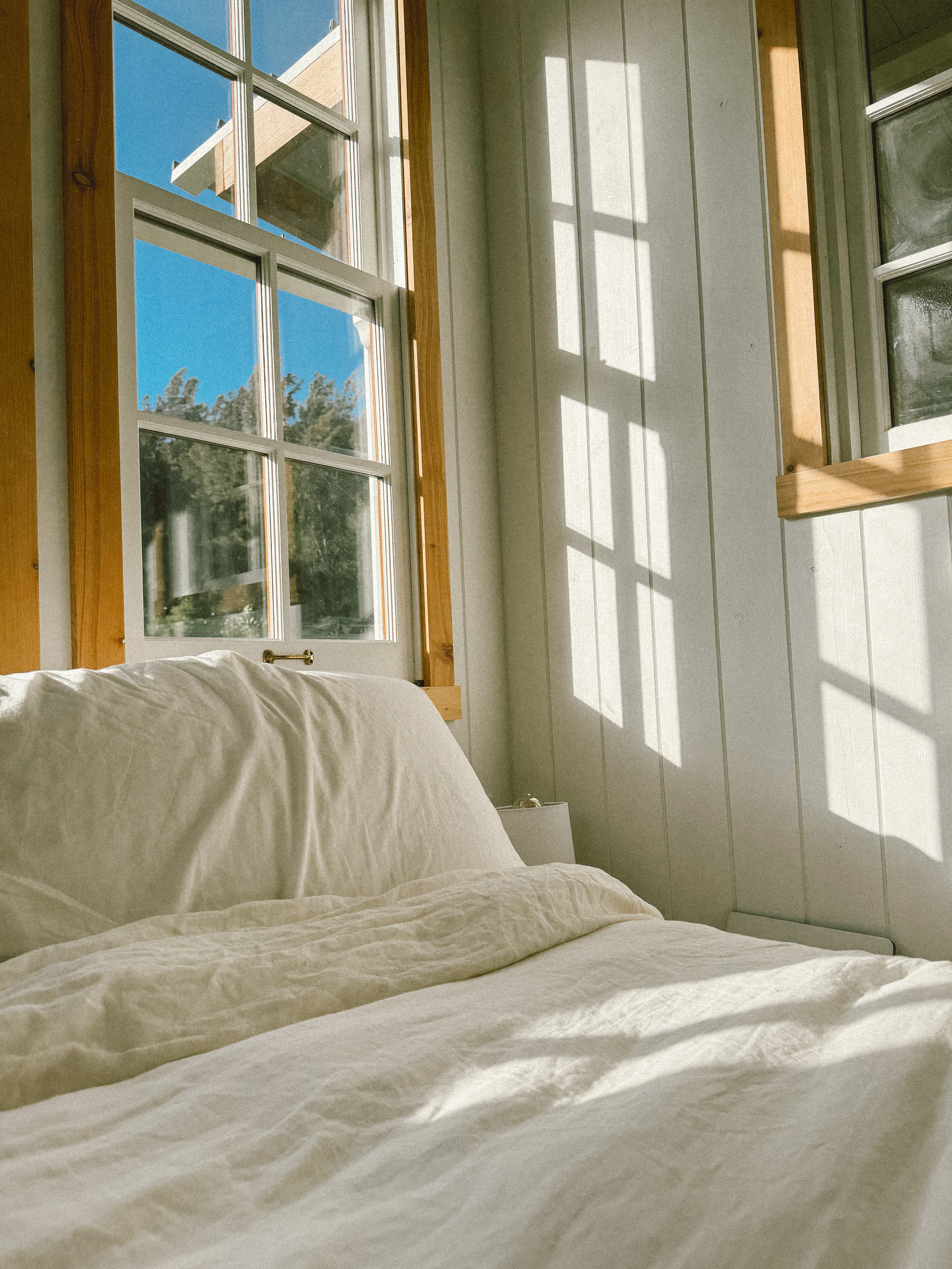 This morning, while my husband attends a land blessing with his community of watermen, I am here, basking in the quiet (except for the blasting wind) and the pockets of sun streaming in through the windows over the bed in between blankets of gray. Our three cats, disturbed by the high winds and unfamiliarity of their new digs, have kept us up much of the night and as I carve out this time to write I’m relieved they’re outside exploring their new terrain. I still get up to call for them from the window every now and then so they don’t stray too far. Today feels slow and tender and like a day for pressing pause on the very long list of building projects needed to complete this home and instead take a nap, weed the neglected garden, and cook our first dinner in our home.